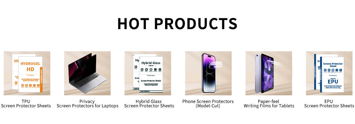 Our vertically integrated capabilities include in-house coating, precision die-cutting, and custom packaging—ensuring high-quality, scalable production across mobile, tablet, laptop, monitor, and automotive display protection.